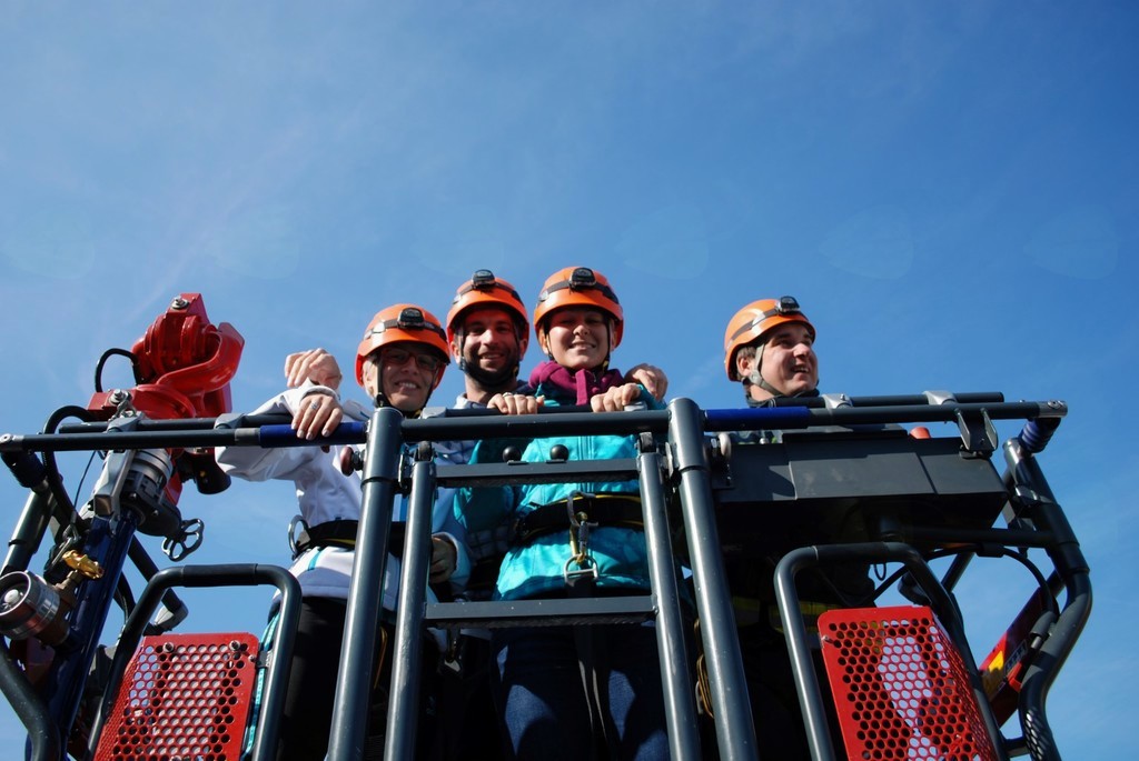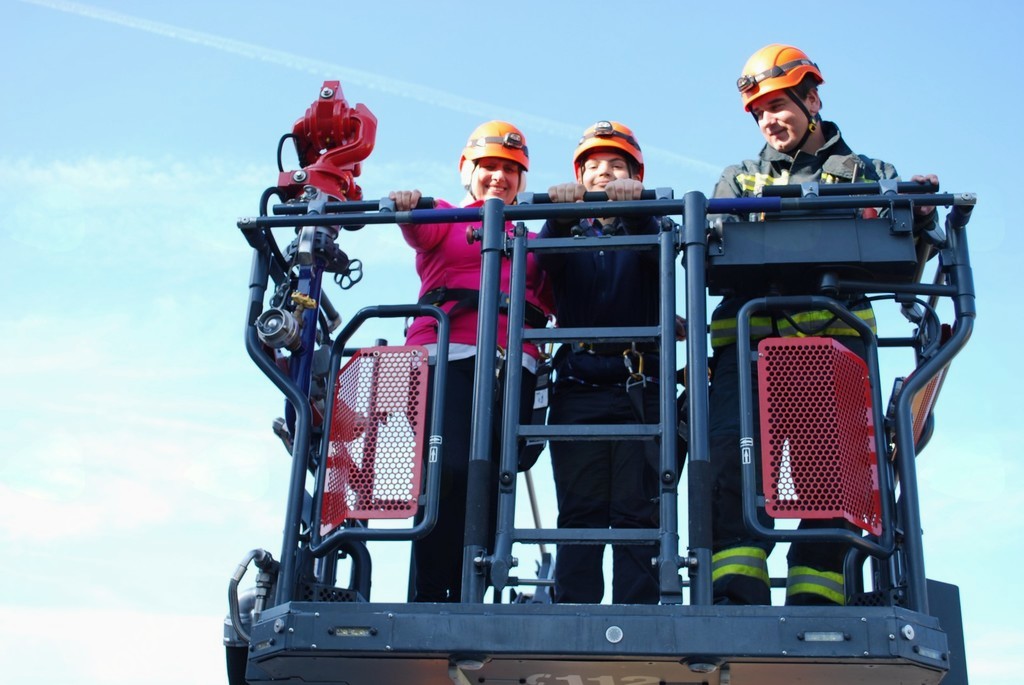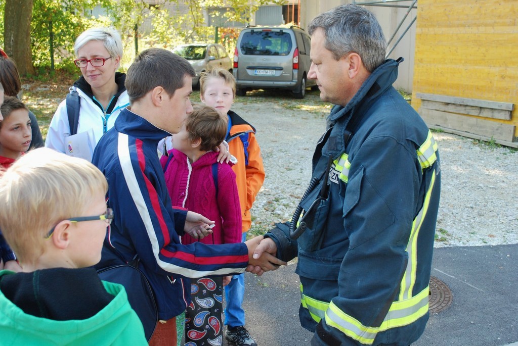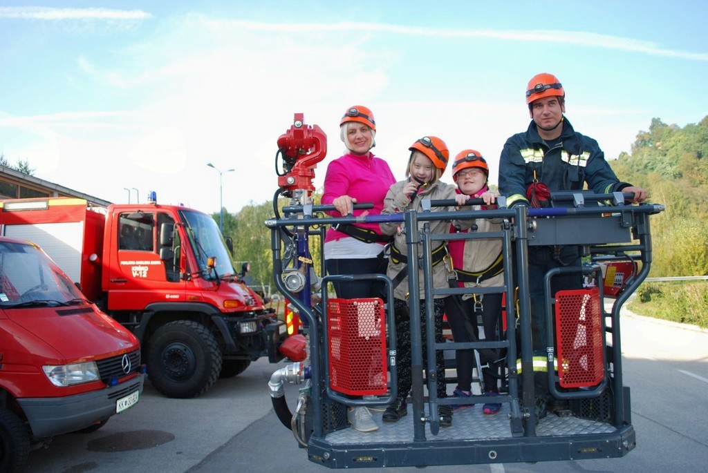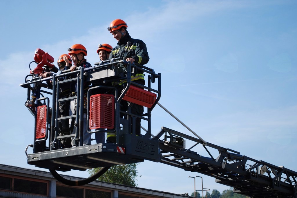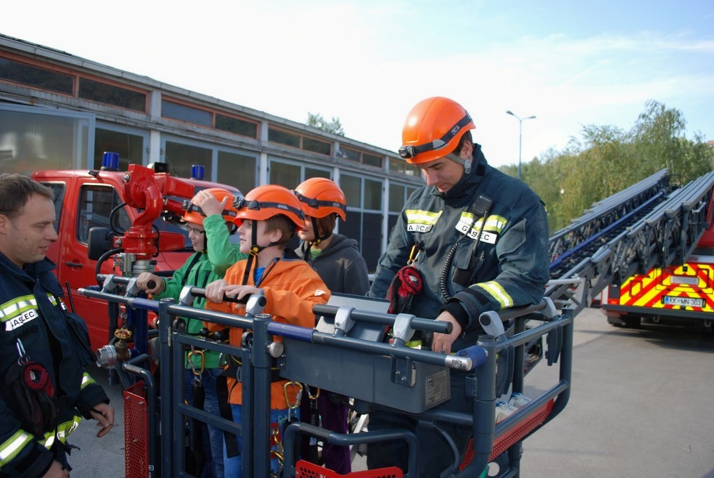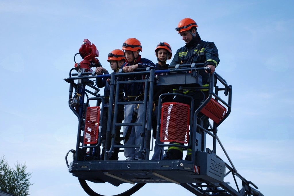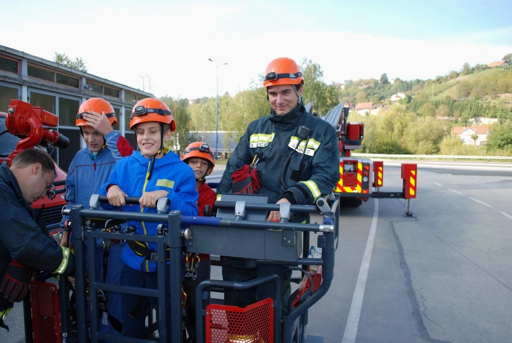 Prva skupina si je najprej ogledala vozni park – gasilska vozila, opremo in pripomočke, s katerimi upravljajo ob prometnih nesrečah, požarih in drugih intervencijah. Medtem pa si je druga skupina že privoščila malo adrenalinsko dejavnost – dvig z avto lestvijo na približno 15 m višine. Ko smo vsi zaključili s prvotno dejavnostjo, smo skupine zamenjali. Po prvem delu smo nato malo pomalicali, nato pa si ogledali spust gasilca po vrvi iz stolpa. Naučili smo se, kako zelo pomembna je zaščitna in varnostna oprema. Po prikazu spusta iz stolpa pa smo lahko še malo pogasili navidezni požar, ob tem pa ugotovili, da morajo biti gasilci zelo močni, saj so najmlajši učenci potrebovali pomoč gasilca, da so lahko cev z ročnikom sploh obdržali v rokah.