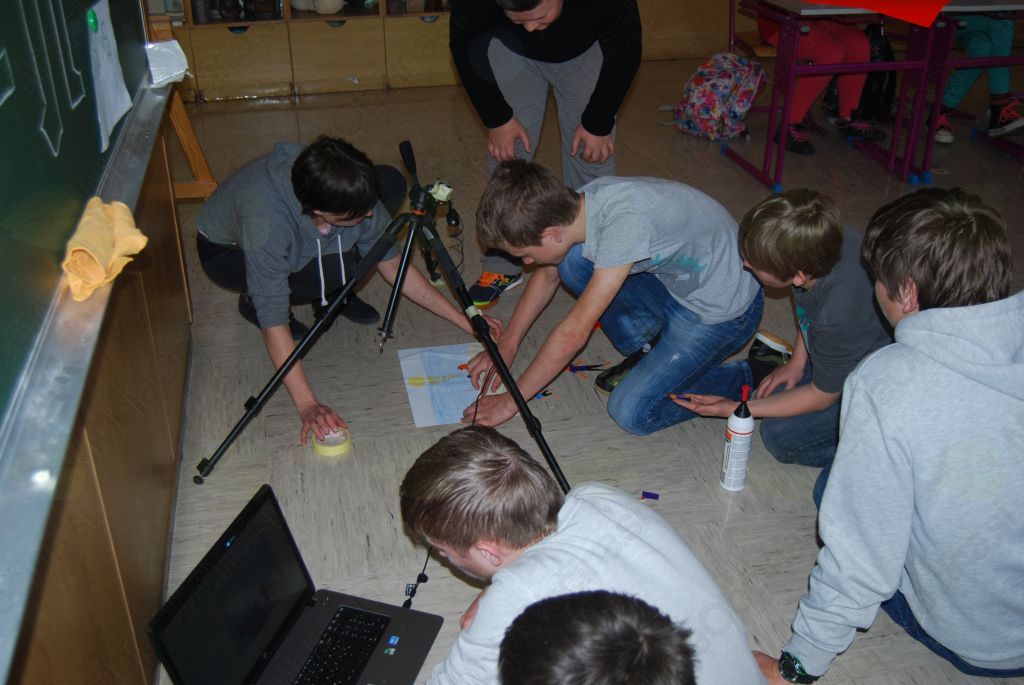 V aprilu smo izvedli drugi del tehniškega dneva. V šolo smo prinesli kolaž papir, škarje in lepilo. S pomočjo teh pripomočkov smo posneli nekajminutni filmček na temo filma Deček in svet. Razdelili smo se v tri skupine in začeli oblikovati ideje. Ena izmed treh skupin je želela izvesti brodolom z ladjo. Naš tim se je odločil za poglobljeno idejo z mislijo na letalsko nesrečo v Franciji. Iz kolaž papirja smo izrezali zasnežene gore, nebo in seveda letalo. Naslednji korak je bilo snemanje. S pomočjo računalnika smo ustvarili pravo umetnino. Pod fotoaparat smo najprej postavljali črke, ki so tvorile naslov, nato pa po naši površini, po gorah, centimeter za centimetrom premikali letalo in ob vsakem premiku pritisnili na stikalo, da je fotoaparat naredil fotografijo. Fotografije smo nato s pomočjo računalniškega programa strnili v kratek filmček z zvočnimi efekti.