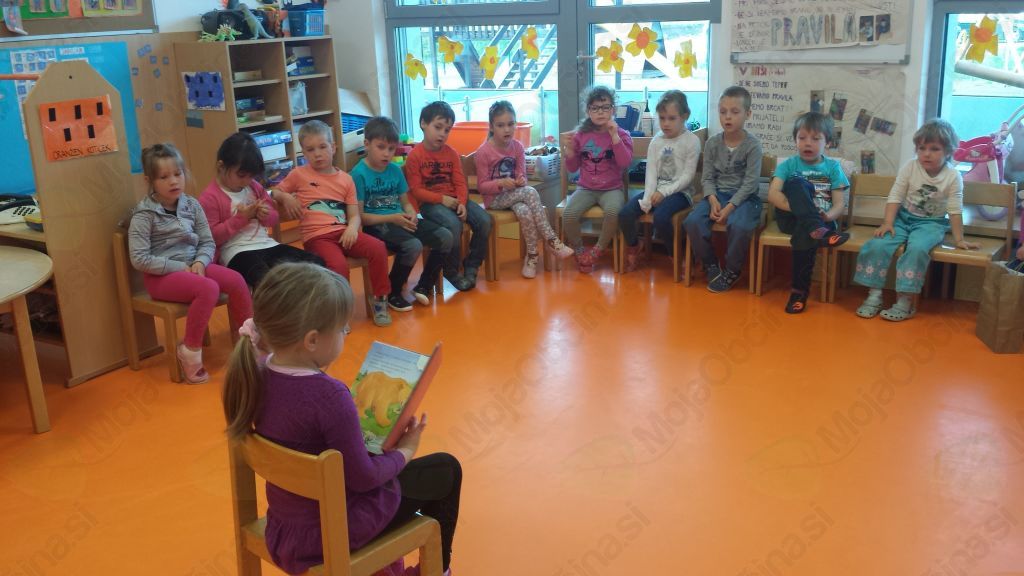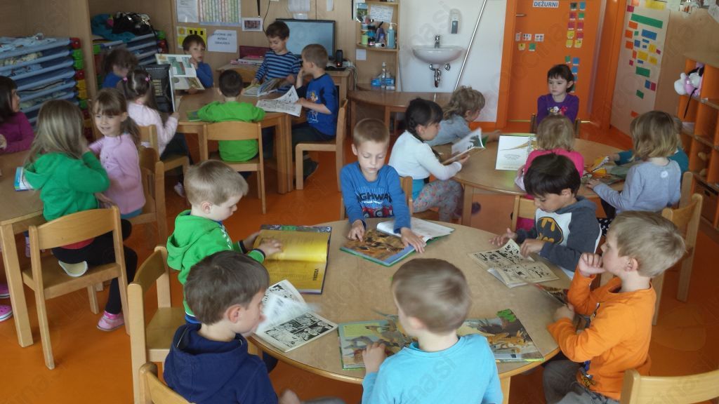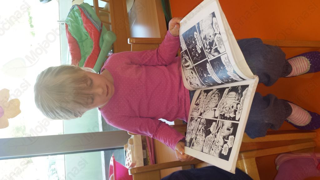 23. aprila praznujemo svetovni dan knjige, zato smo se otroci iz Modre igralnice v tem tednu malo bolj posvetili knjigam. Obiskali smo šolsko knjižnico, v kateri nam je knjižničarka, ga. Breda Blas, predstavila potek izposoje knjig, ravnanje s knjigami, kako se vedemo v knjižnici ter nam prebrala knjigo z naslovom Medvedka Metka. Izposodili smo si knjige o dinozavrih, saj je to trenutno tema, ki nas najbolj zanima. Ogledali smo si zanimive knjige, katere bomo še z veseljem vzeli v roke in jih prelistali. Spoznali smo dva nova pojma, kazalka in kazalo, v knjigah pa našli tudi nekaj že poznanih črk. Med knjigami smo našli tudi stripe, ki jih bomo tudi sami izdelali. Prišli smo do ugotovitve, da je vse stripe, izposojene v šolski knjižnici, napisal pisatelj Miki Muster, kateri je včasih živel v Krmelju. Otroci so v vrtec prinašali tudi svoje najljubše knjige. Te so v vrtcu ponosno predstavili tudi svojim prijateljem. Dejavnosti s knjigami se bodo nadaljevale vse do konca vrtčevskega leta.