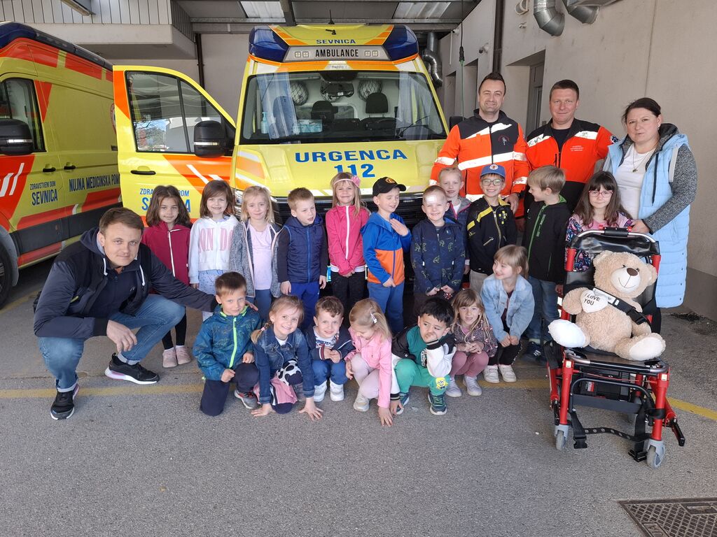 Posebno doživetje je bil tudi ogled reševalnega vozila. Otroci so spoznali, kako poteka pomoč v nujnih primerih in kaj vse reševalci potrebujejo pri svojem delu. Z zanimanjem so si ogledali notranjost vozila in opremo, ob tem pa razvijali spoštovanje do poklicev, ki pomagajo ljudem. Skozi dejavnosti smo poudarjali pomen zdrave prehrane, gibanja, higiene in počitka. Otroci so aktivno sodelovali, delili svoje izkušnje ter utrjevali zdrave navade na njim prijazen in igriv način. Svetovni dan zdravja nas vsako leto opomni, kako pomembno je skrbeti za svoje telo in dobro počutje.