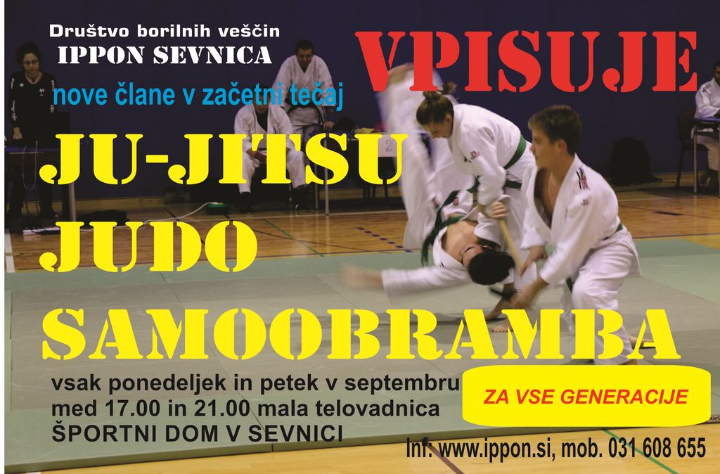 Novi člani, ki se bodo pridružili v DBV Ippon Sevnica, bodo lahko vadbo obiskovali v naslednjih terminih: