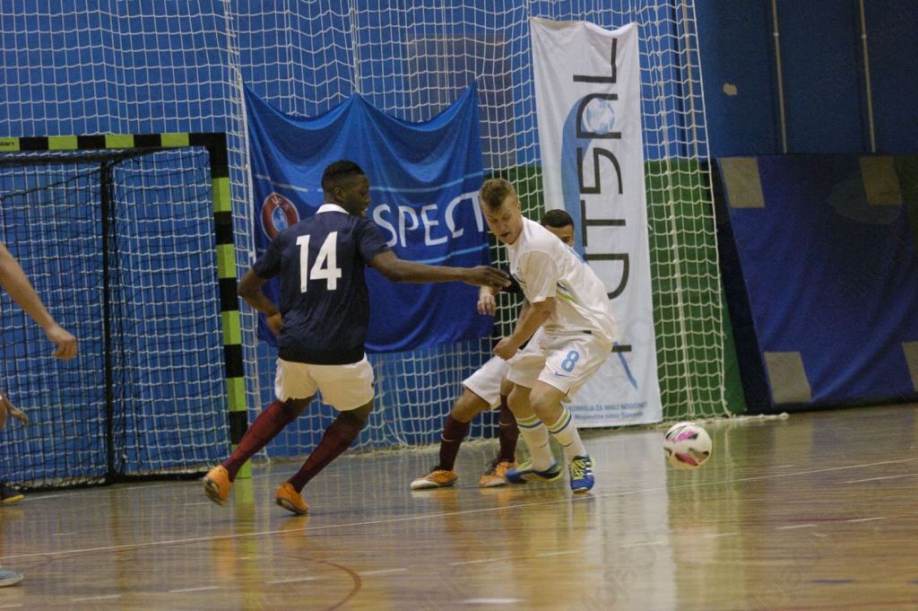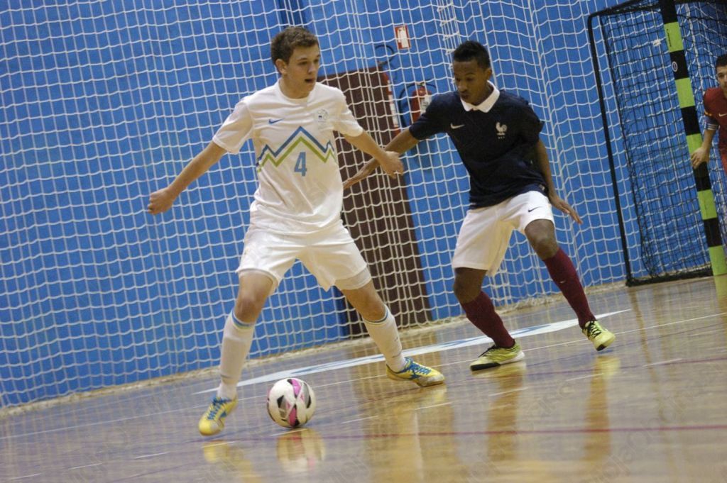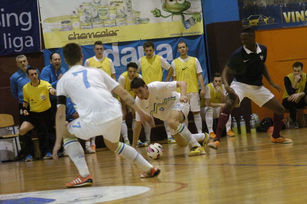 Slovenija, vodil jo je Matej Kavčič, je bolje pričela s postavo Borut Šket, Irnes Škorić, Marko Peček, Dani Vulikič, Nik Zajc. Prav Šket je v 2. minuti dobro meril od daleč, v 3. minuti pa je po poizkusu Škorića prišel do odbite žoge in jo pospravil v francosko mrežo.