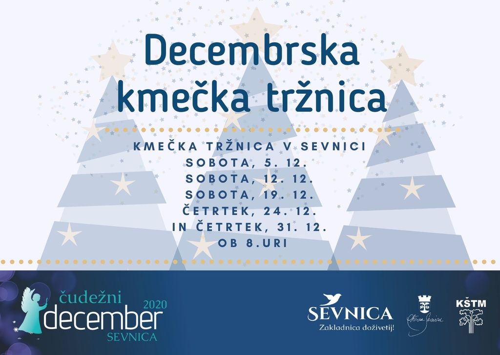 Vabljeni k obisku naslednje decembrske kmečke tržnice, ki bo v soboto, 12. decembra, od 8. do 12. ure. Seveda pa ste vabljeni na Kmečko tržnico tudi vse redne tržnične dni, ki so vsako sredo, petek in soboto.