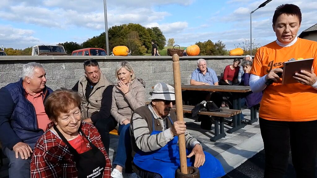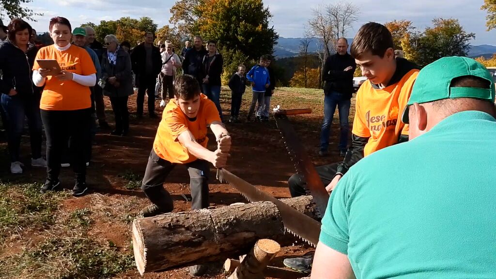Prvo so nam mladci pokazali žaganje z amerikanko. Zanimivo je bilo pogledati izdelavo škop in prekrivanje slamnate strehe. Pogledali smo si še pletenje peharjev, izdelavo košar, gajbic. Na prireditvenem prostoru je odmeval zvok klepanja kose. Skoraj v pozabo je že šlo stopanje prosa. Spet drugi so prikazali ličkanje koruze, luščenje fižola in pletenje čebule v rešte. Za zaključek smo si ogledali še izdelavo čudovitih šopkov iz krep papirja in blaga, ki jih izdeluje mlada cvetličarka Petra Knez.