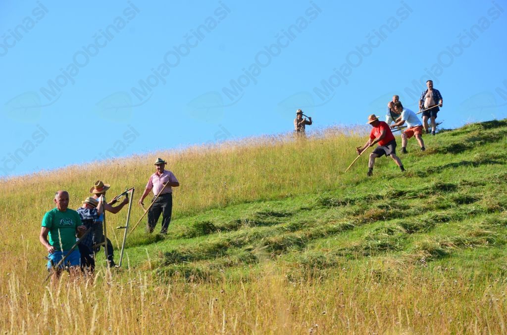 Več kot 35 koscev je ostrino svojih kos preizkusilo na planinskih travnikih vrh Lisce, 5 klepačev pa jim je kose v primeru neljubega srečanja s kamnom sproti poklepalo. Tudi najstarejši kosec, 86-letni Ivan Palčnik iz Kremena, in 83-letna Terezija Frece iz Loke sta se pridružila koscem. Gospodar Milan Volavšek je kmalu po pričetku na lojtrnem vozu, ki ga je vlekel par močnih konjev pod vajetmi Stanka Klenovška, pripeljal malico in sod vina za kosce ter za pridne grabljice. Slednje so najprej redi trave za kosci raztrosile, nato pa suho travo, pokošeno prejšnji dan, pograbile, da jo je gospodar s svojima pomočnikoma ročno naložil na voz.