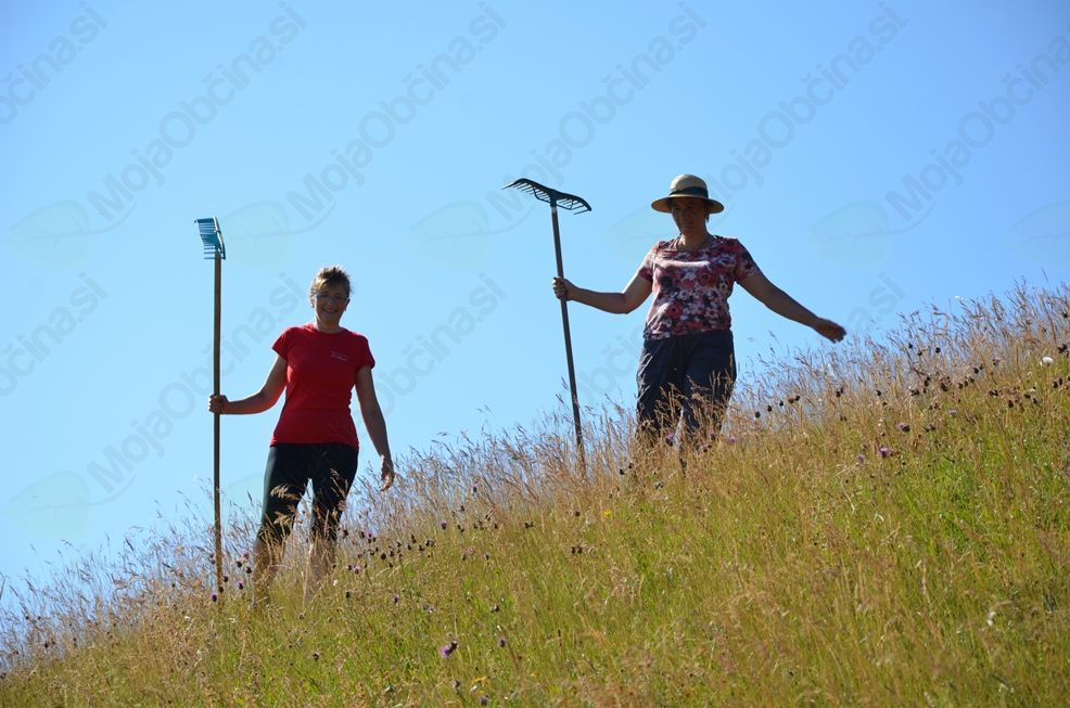Sledila je pristna domača malica, ki so jo sestavljale domača ocvirkova puhla, ajdova ocvirkova potica, klobase, prekajeno meso, kuhana jajca, sveža šalotka in druge domače dobrote. Po malici je poleg košnje in grabljenja organizator za otroke pripravil iskanje sladkih dobrot v kupicah sena ter sankanje po travi, kar so skupaj s številnimi otroci preizkusili tudi nekateri pogumni odrasli.