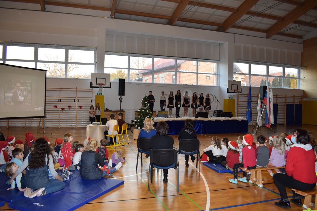Naši učenci so pokazali veliko veselja in izvirnosti pri praznični okrasitvi šole, družili so se ob peki piškotov in izdelavi voščilnic, poskrbeli so za medsebojno obdaritev in skupaj z učitelji pripravili proslavo ob dnevu samostojnosti in enotnosti. Tako smo najprej prisluhnili himni, kasneje pevskemu zboru in recitacijam ter bili priča izvrstnim plesnim nastopom. Učenci so bili za ves trud in zanos skozi celotno leto tudi nagrajeni, obiskal jih je Dedek Mraz in jih prijazno nagovoril ter jim izročil darila.Sledilo pa je še glasbeno presenečenje, in sicer koncert Eve Boto. Učenci so skupaj z Evo in njeno spremljevalno skupino zapeli, zaplesali, na koncu pa so se s priljubljeno pevko lahko tudi fotografirali. Z nasmehom na licih in žarom v očeh so tako odšli na počitnice in novemu letu naproti.