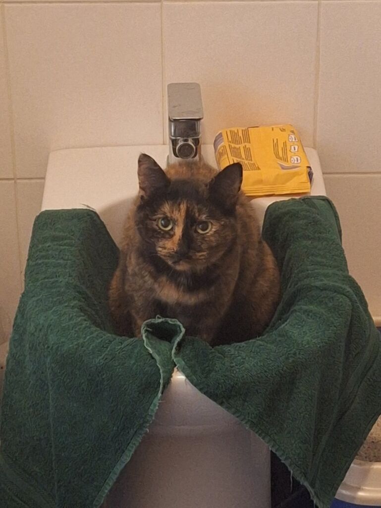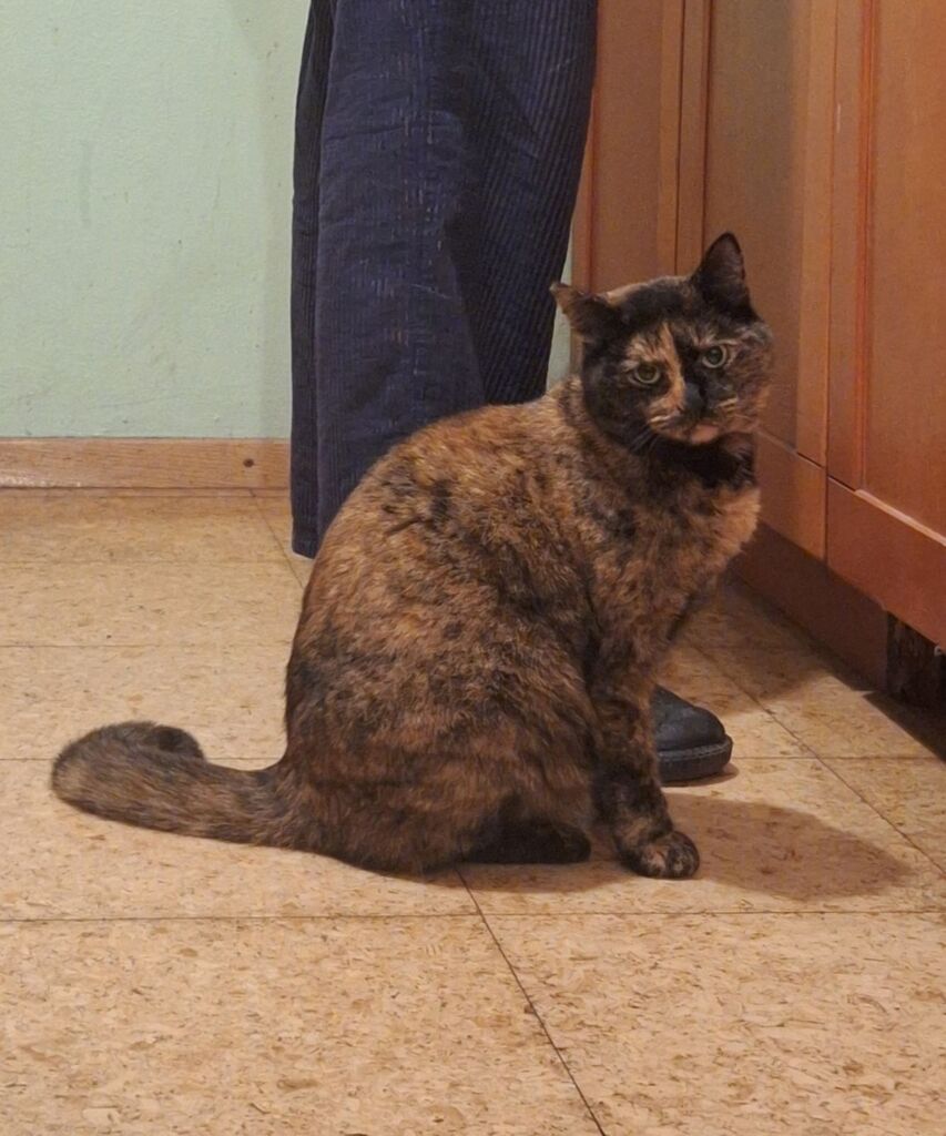 Ima črno ovratnico, je notranja in zunanja mačka, stara 2 leti, želvovinaste barve, nečipirana, sterilizirana.