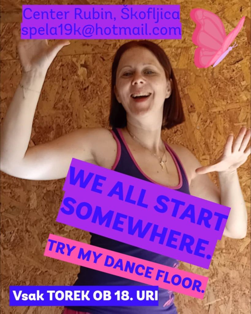 Vabljena na zumbo vsak torek ob 18. uri v Center Rubin, Ob potoku 43, 1291 Škofljica.