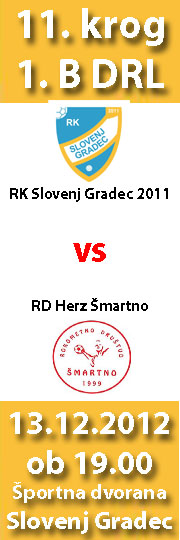 Pred nami je zadnja domača tekma v letu 2012 in čas je da napolnimo dvorano do konca. K nam prihaja prvo uvrščena ekipa 1.B DRL Rokometno društvo Herz Šmartno! Obeta se nov derbi, nov spektakel in seveda najboljši navijači! Pridruži se nam v četrtek 13.12.2012 ob 19.00 v Športni dvorani Slovenj Gradec.