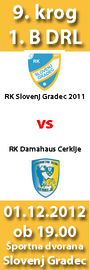 V našo domačo dvorano tokrat prihajajo gostje iz Gorenjske, RK Damahaus Cerklje. Se nam obeta nova zmaga ter polna dvorana? Pridi, navijaj in spodbujaj naše domače fante!Se vidimo v soboto, 01.12.2012 v Športni dvorani Slovenj Gradec!