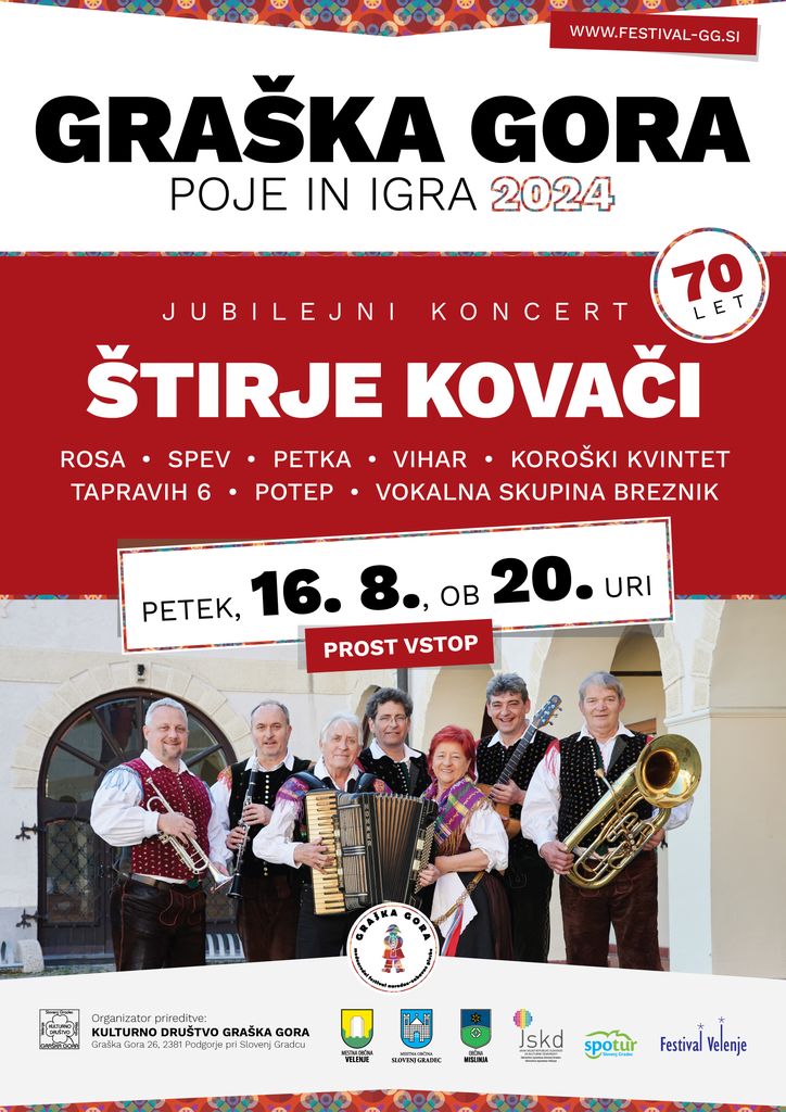 Letos bomo prireditev obeležili s slavnostnim koncertom, ki bo posvečen 70. jubileju ansambla Štirje kovači. Poleg ansambla Štirje kovači bodo nastopili tudi drugi uveljavljeni ansambli, to so ansambel Spev, Rosa, Petka, Vihar, Koroški kvintet, Potep, Tapravih 6 ter vokalna skupina Breznik.
