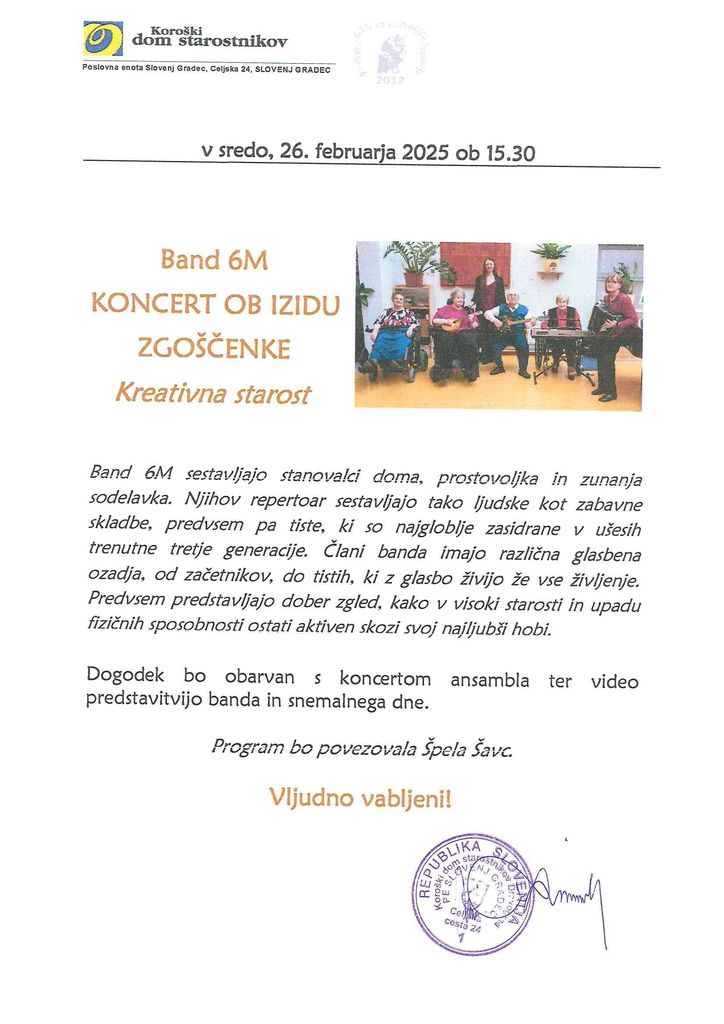 Organizator: KOROŠKI DOM STAROSTNIKOV P.E.: Slovenj Gradec