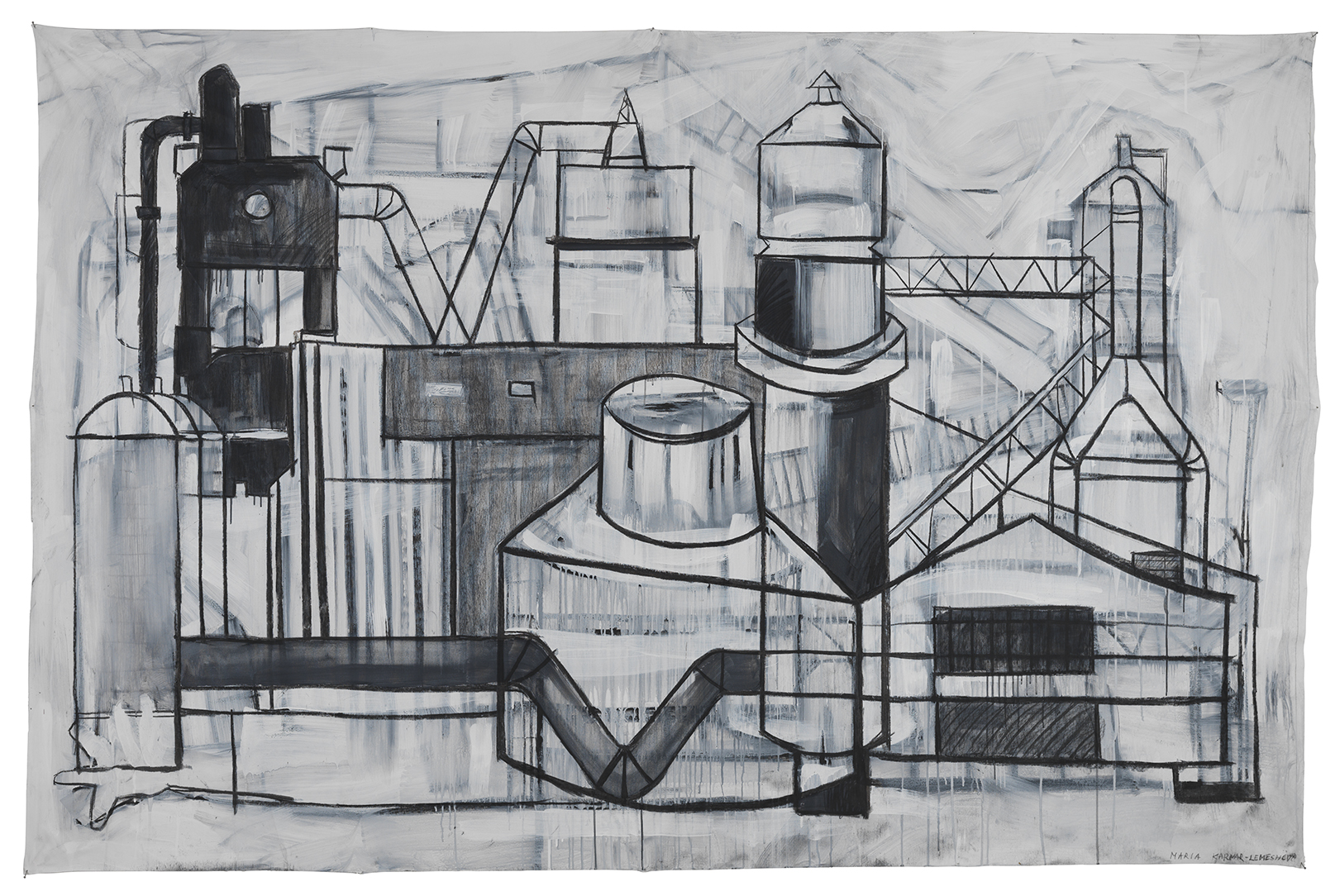 Kot nakaže že sam naslov razstave (ingot=ind. polizdelek oz. inglot=kozmetična hiša), slikarka kot opazovalka odslikava železarski svet z ženske pozicije in vanj vnaša elemente domačnosti, ki omehčajo njihovo surovost. S tem širokopoteznim slikanjem na večjih formatih ustvarja svojevrsten kolaž grafike in slikarstva, simbolično pa nudi vpogled v diapazon ženskega in moškega principa.