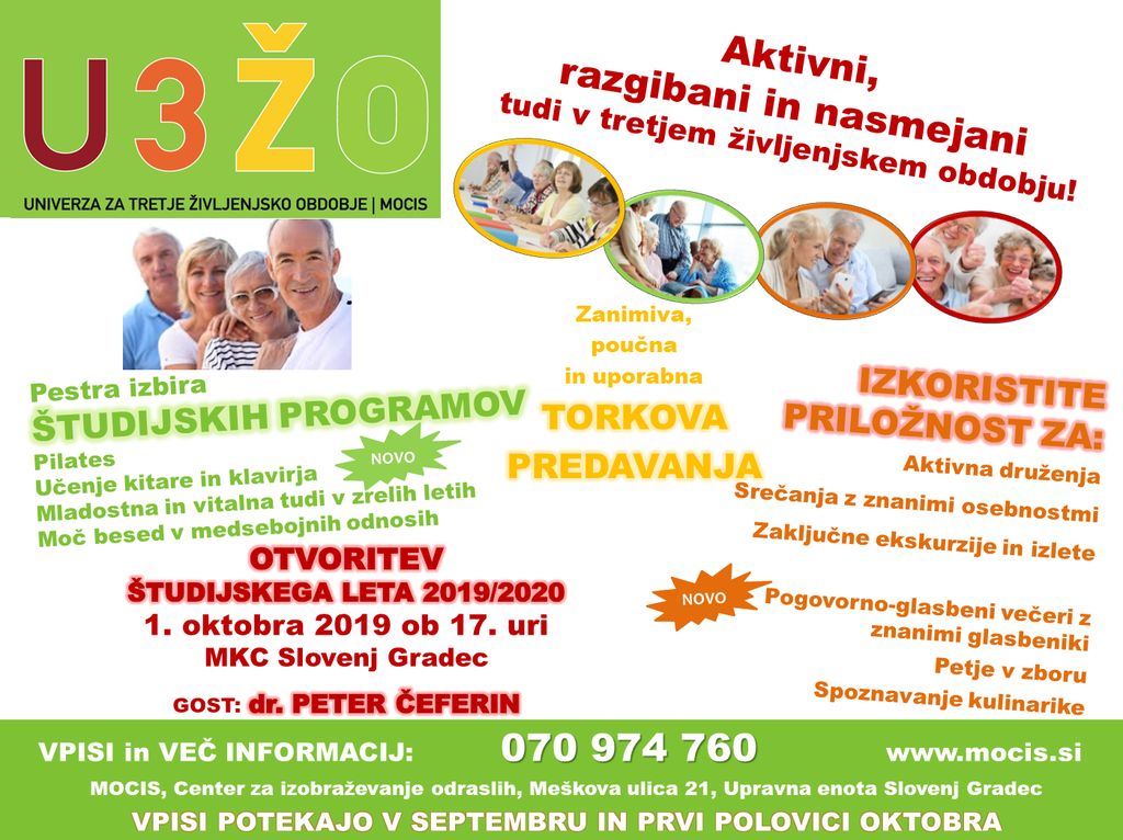 OTVORITEV ŠTUDIJSKEGA LETA 2019/20 UNIVERZE ZA TRETJE ŽIVLJENJSKO OBDOBJE MOCIS