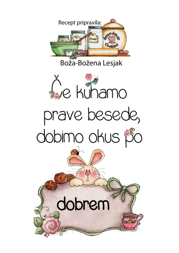 Vabimo vas na predstavitev knjig Bože - Božene Lesjak z naslovom: Če kuhamo prave besede, dobimo okus po dobrem, ki je zapisana v lahkem branju in knjige Vsaka stvar se zgodi z razlogom, ki je prevedena v albanski jezik. Knjiga v lahkem branju je nastala v sodelovanju z bralci in bralkami Tretje osnovne šole Slovenj Gradec in Zavoda Risa.