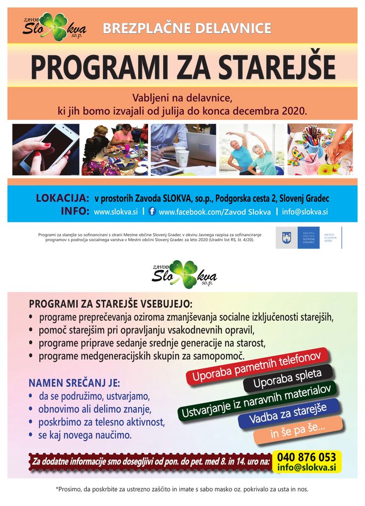 Kontaktni podatki organizatorja: Alenka Berložnik, info@slokva.si, +386 (0)31 345 095.