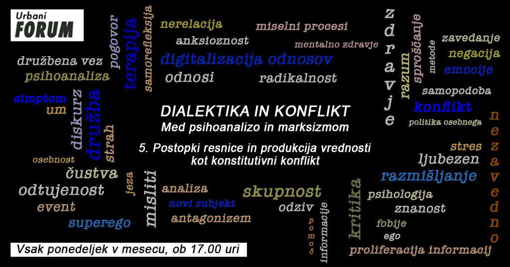 Sklop enajstih predavanj z naslovom Dialektika in konflikt: med psihoanalizo in marksizmom poteka v okviru projekta Urbani FORUM, katerega namen je odpirati raznolike uvide v sodobno družbo skozi različne teoretske okvire in discipline, zlasti filozofijo, politično teorijo ter psihoanalizo.