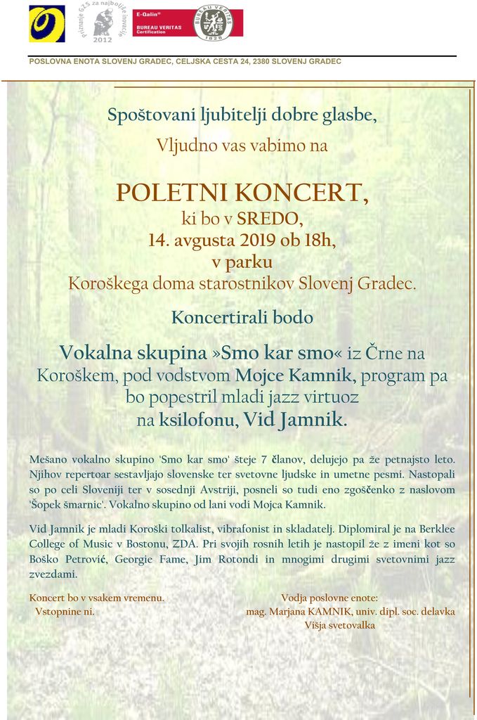 Organizator: KOROŠKI DOM STAROSTNIKOV P.E.: Slovenj Gradec
