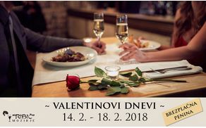 V času valentinovega (14. 2. - 18. 2. 2018) pa bomo vse pare ob naročilu hrane brezplačno razvajali tudi s kozarcem penine!