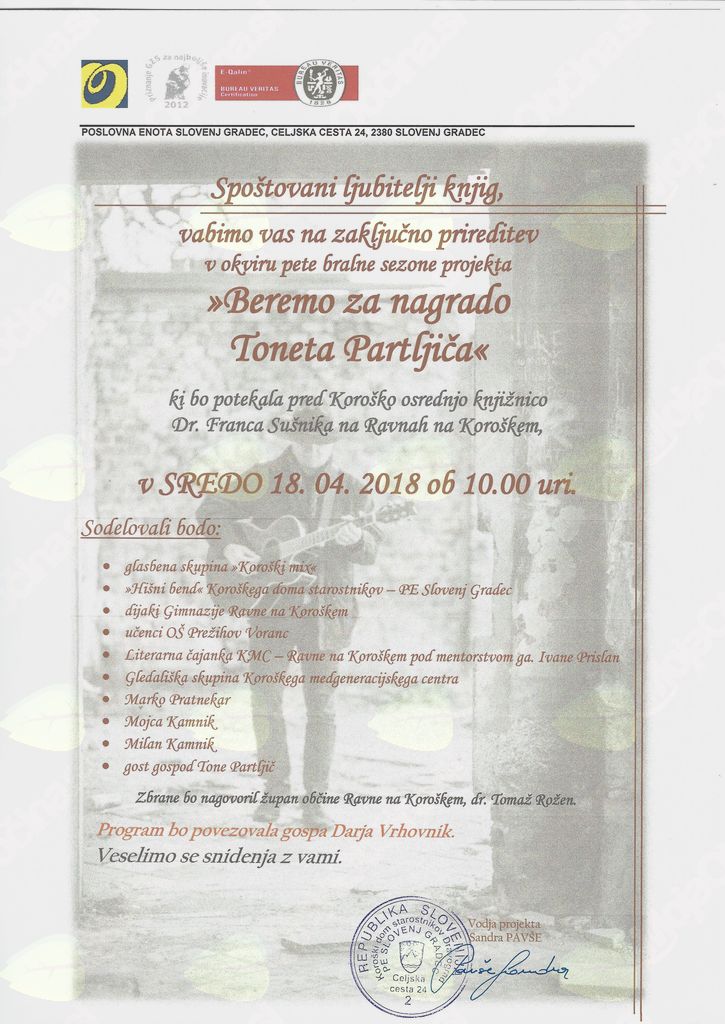 Zaključna prireditev - Beremo za nagrado Toneta Partljiča