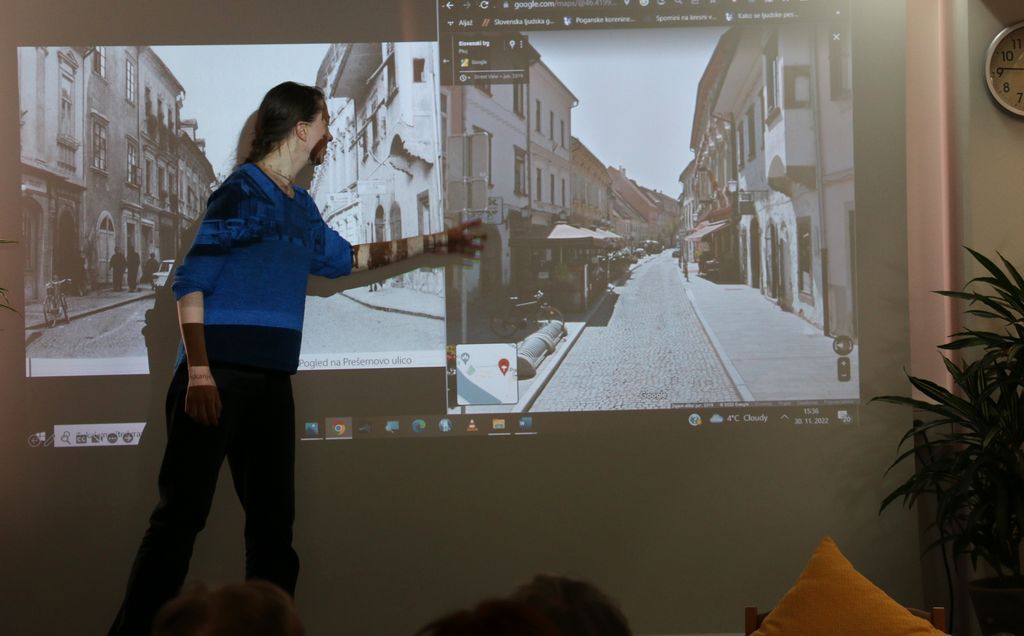 Po predstavitvi je sledila debata, v kateri so poslušalci delili svoje zgodbe, ki bi jih lahko vključili v novo stimulacijo, kjer bi se sprehajali po Slovenj Gradcu.