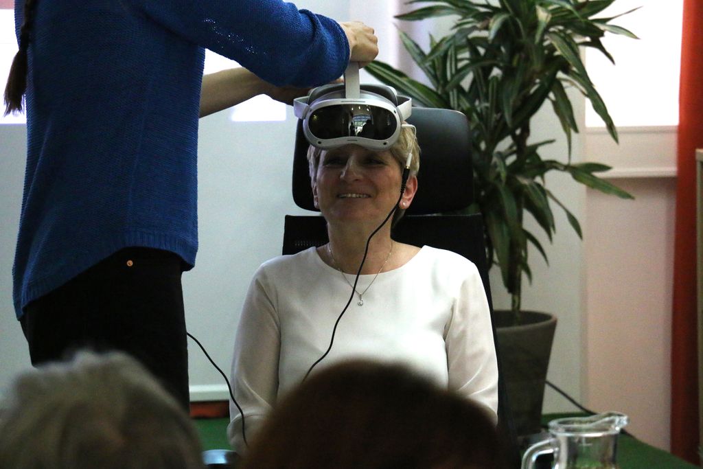 25. 3. 2025 popoldne je potekal Alzeimer caffe, na katerem nam je Mojca Kamnik predstavila virtualno stimulacijo, katere osnovni namen je sproščanje in kognitivna stimulacija oseb z demenco. Njen projekt izvira iz potreb aktivnosti za osebe z demenco v starajoči se družbi in bo ob pomanjkanju kadra v institucionalnem varstvu zaposlenim v veliko pomoč.
