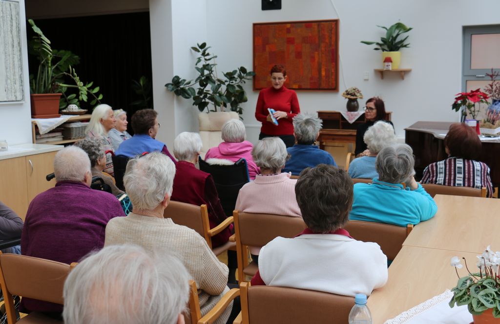 Letos zaznamujemo t. i. Meškovo leto zato smo se tudi 17. januarja pri bralni uri s knjižničarkama posvetili topli in mehki literaturi našega pisatelja, pesnika, dramatika in duhovnika Franca Ksaverja Meška. Toplo pa so nas pobožale tudi besede v zahvalo za naše dobro delo sorodnikov našega stanovalca, ki je bil med prvimi v našem domu.