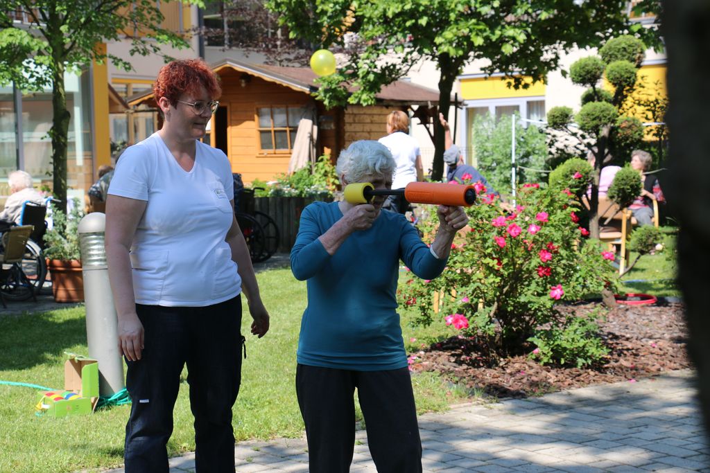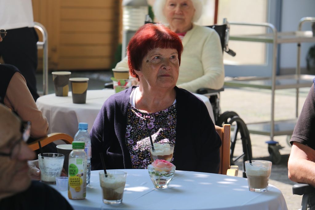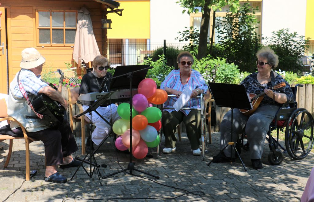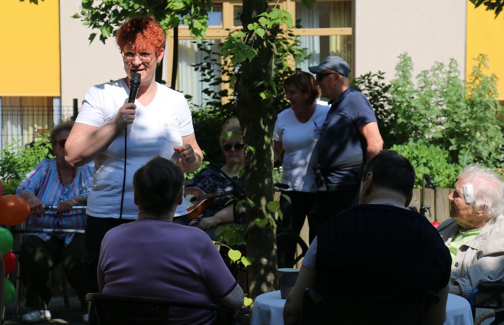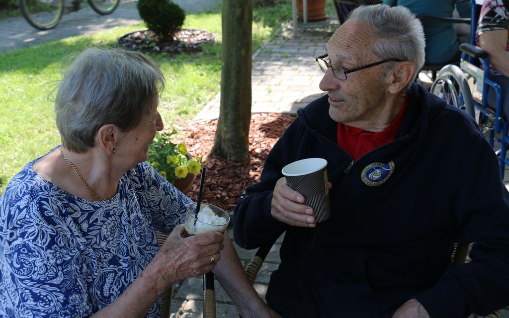 V našem domu so žlahtna tradicija pestre poletne igre in seveda tudi pikniki s slastno hrano. Vse to oplemeniti še domski band 5M in nas spodbuja k radoživosti. Po svojih sedanjih sposobnostih se razmigamo, igramo odbojko z nagajivim balonom, zbijamo piramide kozarcev, kegljamo…, tako da včasih kar lovimo sapo. Tako lepo nam je na teh igrah, da si zelo želimo še »repete«.