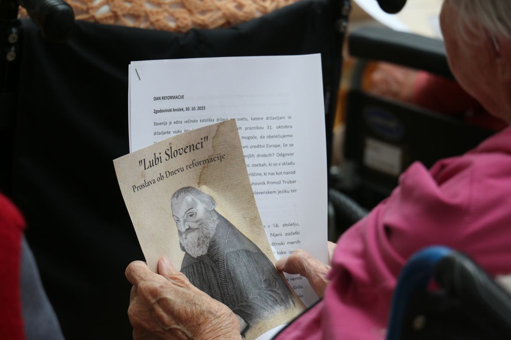 Dan reformacije smo 30. oktobra obeležili na malo drugačen način. Potekal je program v obliki aktivnosti, ki ga je vodila mentorica zgodovinskega krožka, Lea Knez, kustosinja pedagoginja iz Koroškega pokrajinskega muzeja. Poudarila je, da moramo biti ponosni na slovenščino, prav tako pa tudi na našo koroško kulturo in narečje, ki ga skupaj ohranjamo za prihodnje generacije.