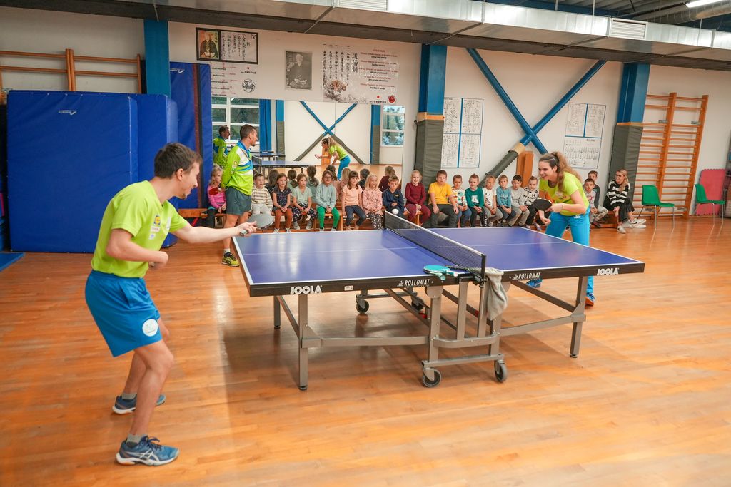 Učenci, dijaki in varovanci so se skozi celo dopoldne izmenjevali pri parašportnikih, ki so prikazali različne vrste parašportov. Boccio sta predstavila Tatjana Strmčnik in Matjaž Bartol, paranamizni tenis so prikazali trener Ožbej Poročnik ter parašportnika Karin Praček in Luka Trtnik, ki je tudi ambasador programa Postani športnik, paralokostrelstvo paralokostrelec Simon Turk, atletiko sta prikazala večkratni udeleženec paralimpijskih iger Janez Hudej in Nejc Stakne, udeleženki letošnjih paralimpijskih iger v Parizu Lena Gabršček - tudi ambasadorka programa Postani športnik in Klara Vrabič sta vodili odbojko sede, košarko na vozičkih je predstavil trener in selektor slovenske reprezenetance košarke na vozičkih Žiga Kobaševič, praktično pa sta jo prikazala parakošarkarja Matjaž Linasi in Aleksander Rebernik iz Društva paraplegikov Koroške. Manjkala pa seveda tudi ni srčna maskota paralimpijskega komiteja Levček Mark.