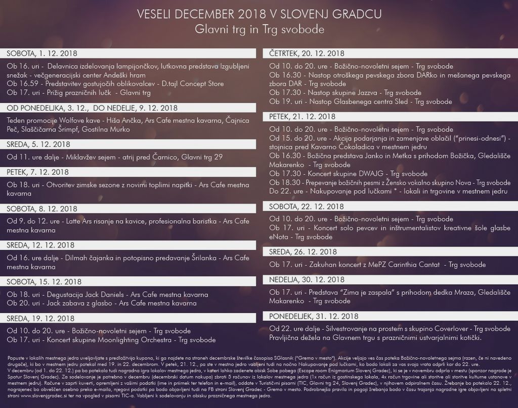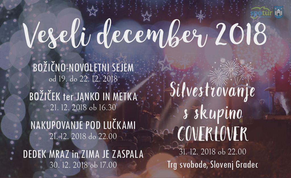Vabljeni na decembrsko druženje v mestno središče Slovenj Gradca! Preživite praznične dni v dobri družbi in prijetnih glasbenih ritmih, najmlajše pa pripeljite na ogled otroških predstav s prihodom dobrih mož.