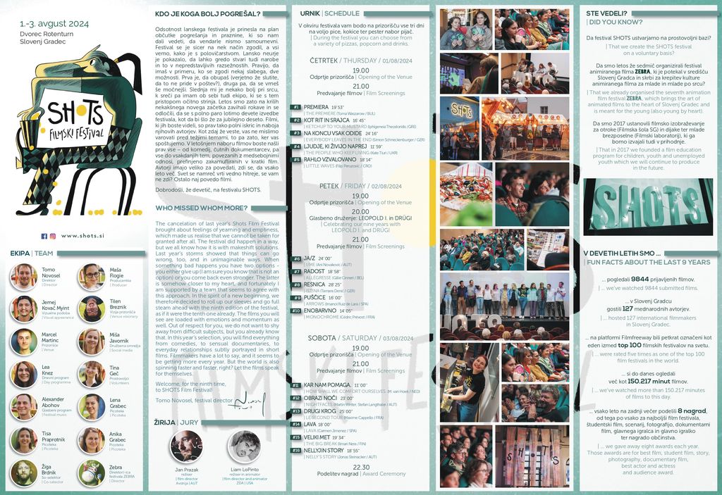 Filmski teden v Slovenj Gradcu se po festivalu animiranega filma Zebra nadaljuje z devetim mednarodnim filmskim festivalom kratkih filmov SHOTS, ki bo od 1. do 3. avgusta potekal na dvorišču dvorca Rotenturn.