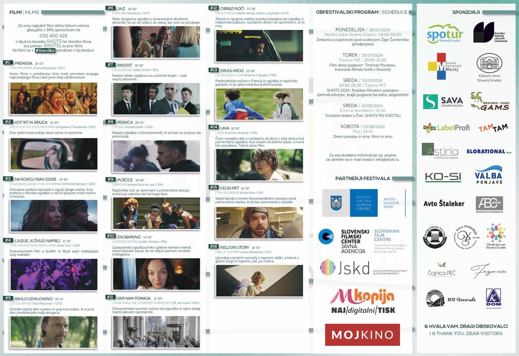 Na ogled bo 16 filmov iz 11 držav. Vstopnine ni, filmi so podnaslovljeni s slovenskimi podnapisi.