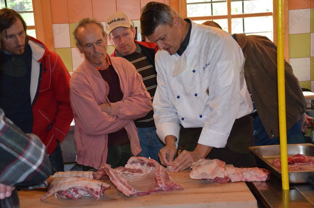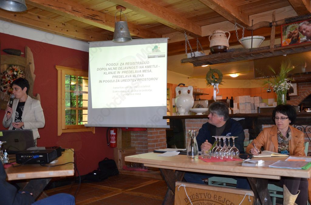 Letos smo za kraj srečanja izbrali Turistično kmetijo Lesjak, v Miklavžu pri Taboru. Naslov prvega predavanja je bil Predelava živil živalskega izvora, ki ga je predstavil Jože Zalar iz Višje šole za turizem Bled. Najprej je opisal, kako so uporabni različni deli mesa jagnjetine. Sledil je praktičen prikaz finega razseka ter končne priprave različnih delov mesa pripravljenih za peko ter drugo uporabo. Vse več je povpraševanja po izdelkih iz mesa drobnice, ki so že pripravljeni takoj za uporabo. Irena Kos, specialistka za predelavo mesa na KGZS - Zavod Celje, nam je predstavila trženje in registracijo obratov za predelavo mesa. Na koncu je še Jakob Verk predstavil primer dobre prakse, saj se že nekaj let ukvarja s predelavo mesa, tudi drobnice. Udeleženci so si prislužili tudi malico, med dobrotami je bila tudi jagnjetina.