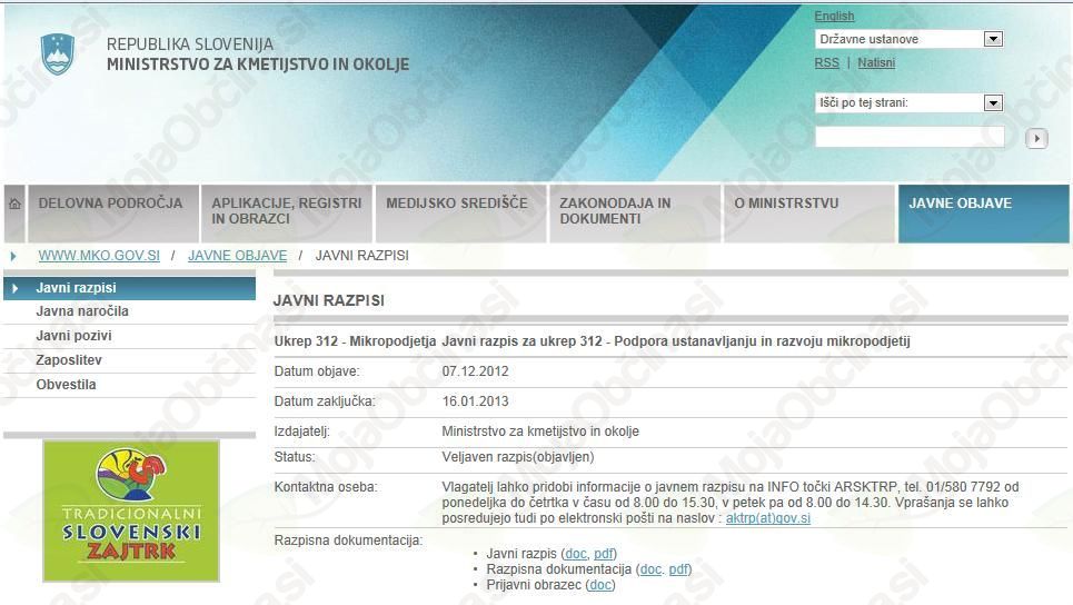 Rok za prijavo na razpis: do vključno 16.1.2013 do 24.00 ure.
