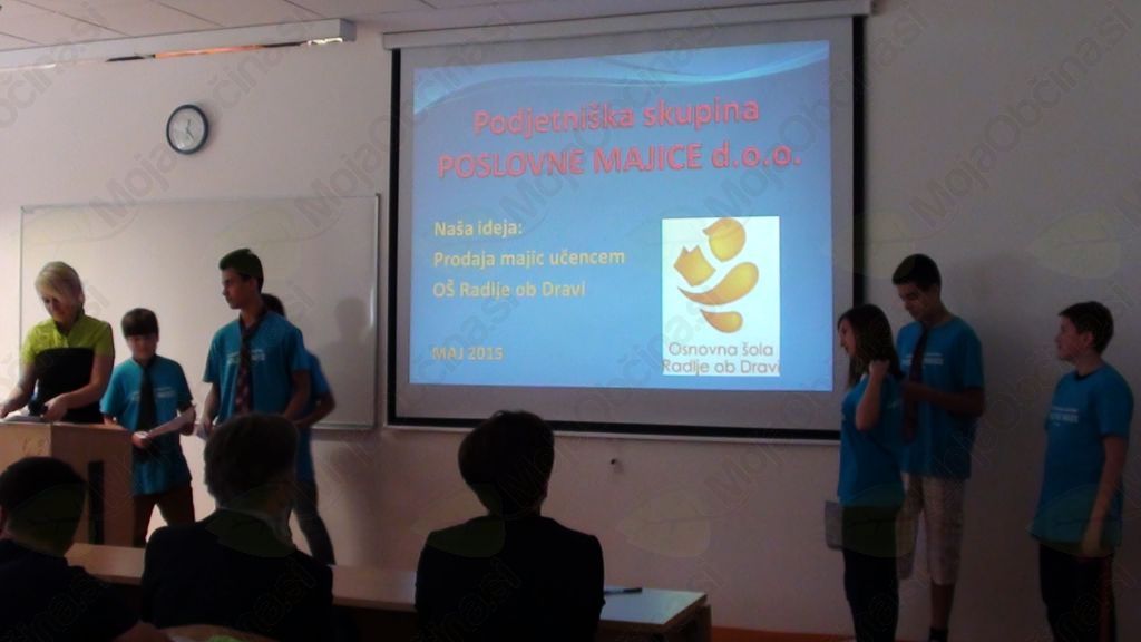 Podjetniška skupina z imenom POSLOVNE MAJICE iz OŠ Radlje ob Dravi je v okviru podjetniškega delavnice izbrala skupno podjetniško idejo ter se preizkusila v praksi kot podjetniki. Mladi podjetniki so izvedli podjetniško idejo Prodaja majic osnovnošolcem OŠ Radlje ob Dravi. V okviru krožka so se tudi srečali z dvema podjetnicama Nives Langeršek, s.p. in zobotehnico Nado Mravljak Urbanc. Mladi so ugotovili, da je lahko tržna segmentacija kupcev tudi draga, saj so najprej načrtovali različne promocijske majice za posamezne razrede, a je finančni načrt pokazal, da bi imeli s tem preveč stroškov, zato so na koncu izbrali enotno podobo podjetniške majčke za OŠ Radlje ob Dravi in jo tudi uspešno tržili.