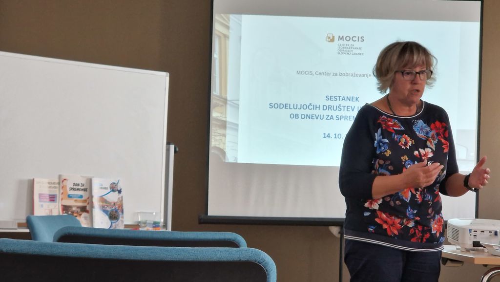 Sestanek sodelujočih društev in organizacij ob dnevu za spremembe 2023 in srečanje prostovoljcev na Trgu svobode v Slovenj Gradcu.