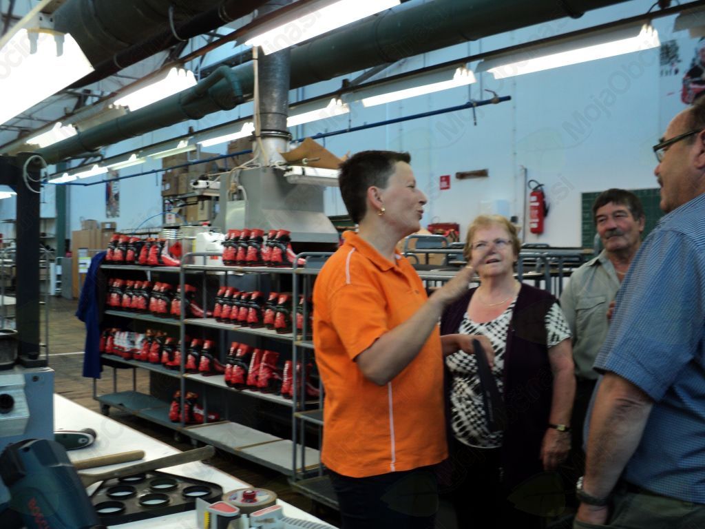 V Žireh so jih prijazno sprejeli predstavniki ALPINE, tovarne obutve Žiri in Turističnega društva Žiri. V ALPINI je zaposlenih 380 Žirovcev. Veliko proizvodnje se vrši v drugih državah. Najprej so si ogledali proizvodnjo njihovih izdelkov. Nato so v industrijski prodajalni čevljev imeli možnost nakupa po zares zelo ugodnih cenah. Po ogledu tovarne so si ogledali razstavo klekljanih starih avtomobilov.