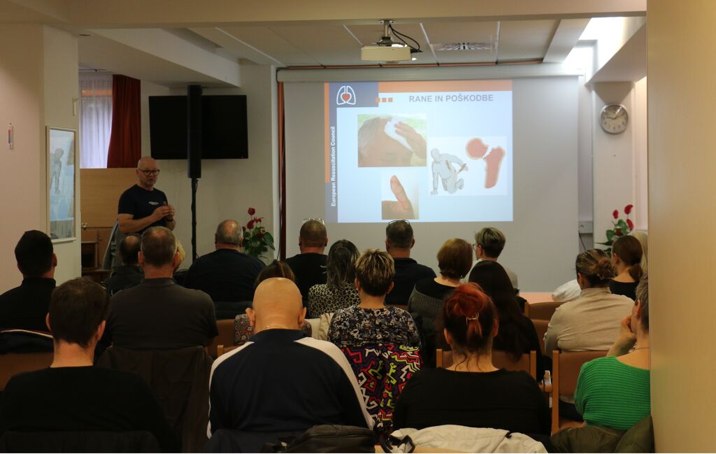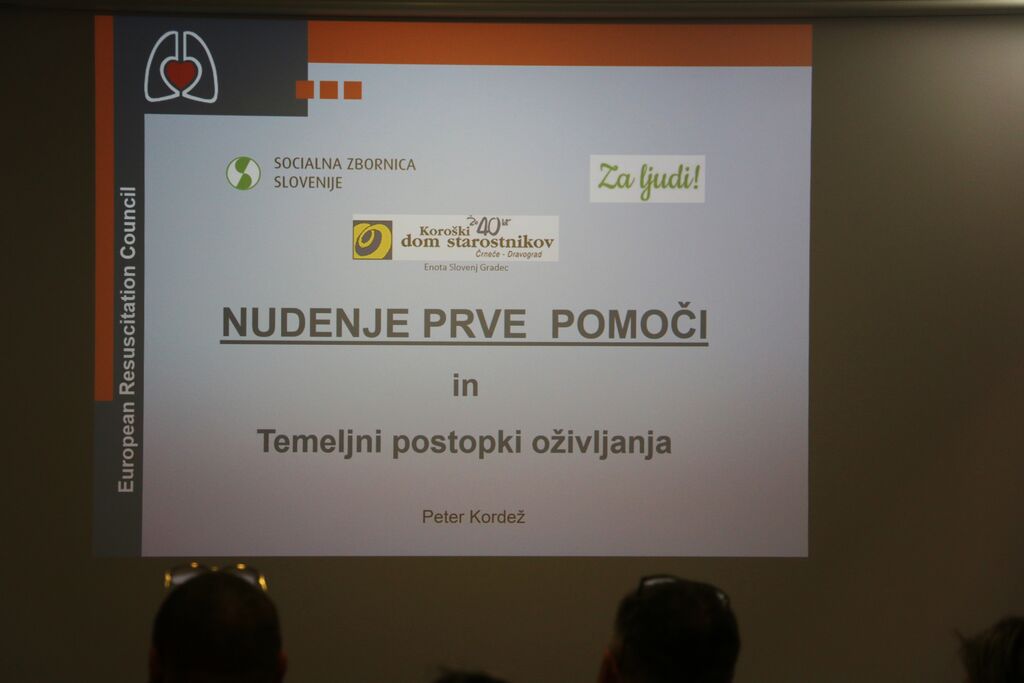 Od 11. 2. do 13. 2. 2026 bo pri nas potekalo izobraževanje za oskrbovalce družinskega člana v okviru dolgotrajne oskrbe. Danes smo prisluhnili dipl. zdravstveniku, Petru Kordežu, ki nam je na razumljiv in praktičen način predstavil nudenje prve pomoči in temeljne postopke oživljanja ter naši dipl. fizioterapevtki, Vesni Gologranc, ki je predavala o preprečevanju posledic dolgotrajne nepomičnosti, zagotavljanju optimalnih položajev, izvajanju transferjev ipd.