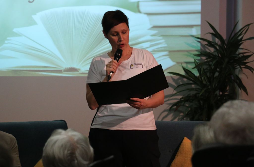 Spet smo obeležili dogodek Bralne značke Toneta Partljiča, ki že vrsto let spodbuja branje in literarno ustvarjanje tudi v tretjem življenjskem obdobju. Gospod Partljič se je seveda z veseljem odzval našemu povabilu, in s svojo toplino, z iskrivim humorjem in bogatim pripovednim darom – kot vedno, navdušil vse prisotne.