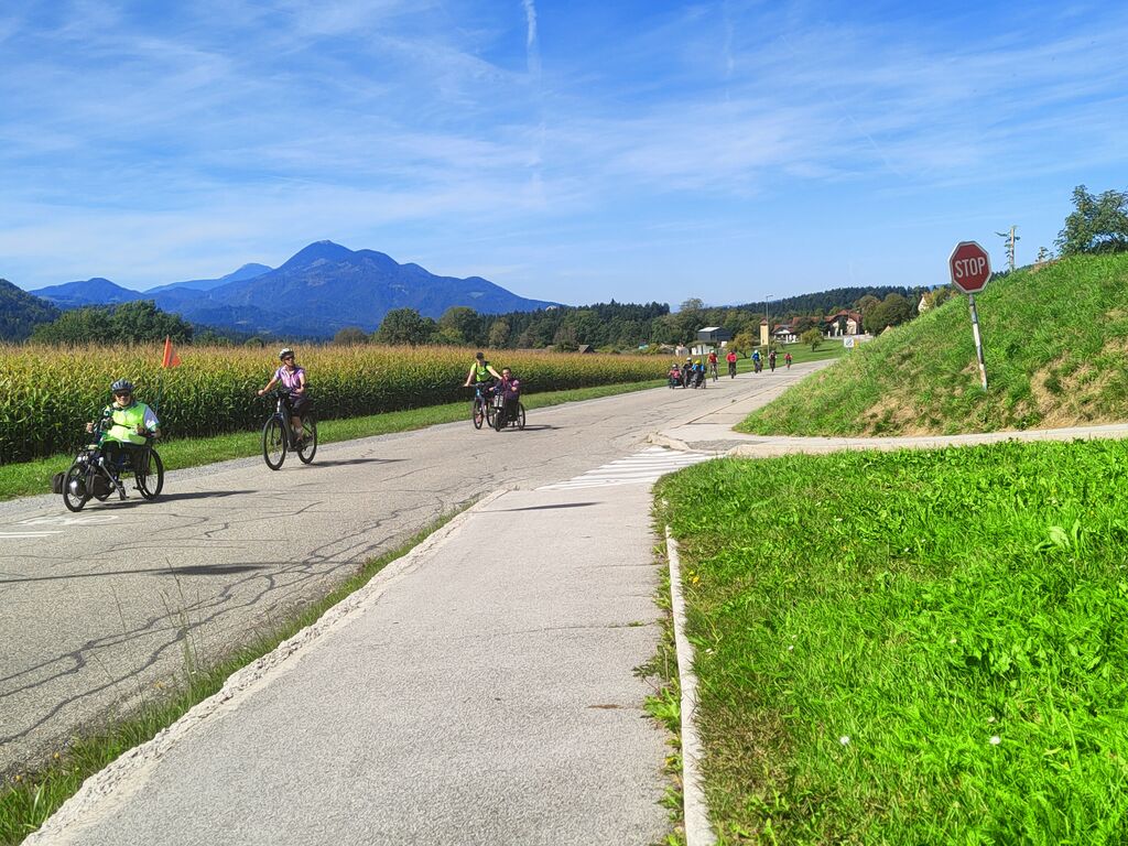 Tudi to leto smo ji nadeli še izobraževalno noto – varnost v prometu. Pri Mladinskem kulturnem centru – Hostel Slovenj Gradec smo se zbrali na izredno lepo septembrsko jutro. Nagovorili so nas predsednik Društva paraplegikov Koroške Damjan Hovnik, podžupan mestne občine Slovenj Gradec dr. Peter Pungartnik, ga. Nika Drofenik iz Regionalne razvojne agencije Koroške in organizator Festivala drugačnosti Stojan Rozman. G. podžupan se je zahvalil društvu za dobro sodelovanje in v nadaljevanju naštel projekte ter predstavil kakšen naj bi še bil razvoj na področju mobilnosti. Temu se je priključila ga. Drofenik s poudarki, na kaj se mora paziti pri razvoju kolesarskih povezav in oblike sodelovanje z raznimi deležniki pri tem. Pisana kolona kolesarjev je krenila na »zavito« pot po Mislinjski dolini: po cesti v Raduše, Podgorje, Dovže in Mislinjo. Med potjo smo pozdravili nekaj svojih članov, se odžejali in se spustili po kolesarski poti »Štrekna« v Slovenj Gradec. Prevozili smo 45 kilometrov. Druženje smo zaključili s skupnim kosilom in druženjem.
