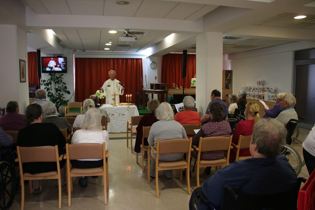 Danes je v skupnem prostoru potekala sv. maša, ki jo je daroval gospod Tine Tajnik, prenašali pa smo jo tudi preko ekranov v sobe naših stanovalcev.