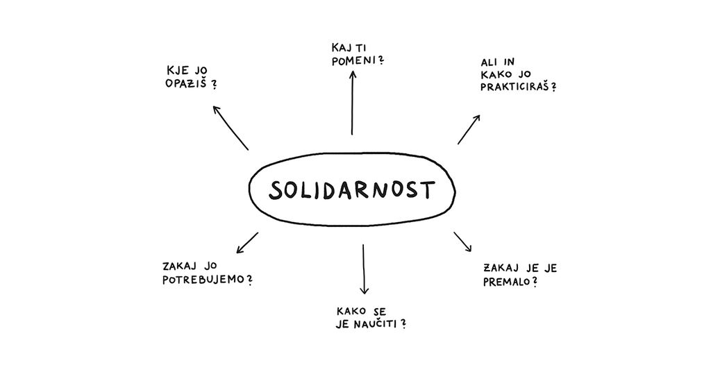 Ob premišljevanju o aktualnih družbenih problemih in nič kaj pozitivnih obetih za prihodnost se sprašujem, kaj je tisto, kar naši družbi danes najbolj manjka, da bi spremenili smer razmišljanja in delovanja? Namesto nastavljanja zrcala in prikazovanja bolečine ter brezizhodnosti raje skušam razmišljati o spremembah in o načinih, kako delovati za boljšo prihodnost. K aktivnemu premisleku in sodelovanju vabim tudi publiko. Na razstavi bomo skupaj odgovarjali na vprašanja: Kaj nam osebno pomeni solidarnost? Kje jo opazimo? Ali in kako jo prakticiramo? Zakaj je je premalo in zakaj jo sploh potrebujemo? Kako se je naučiti?“