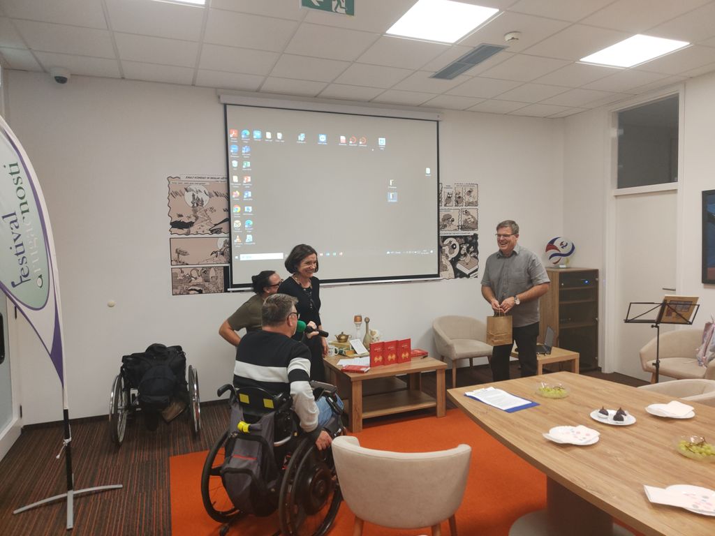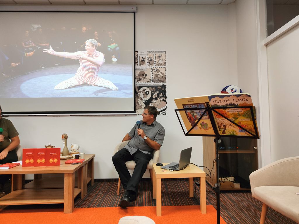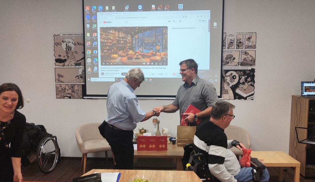Svoj roman z naslovom Življenje v podzavesti, podnaslov Borec – dnevnik nekega strahopetca nam je v sredo, 25. 9. 2024, zvečer v knjižnici K. Meška predstavil avtor Simon Šerbinek. Zbrane je nagovoril s Stojanom Rozmanom iz Društva paraplegikov Koroške. Simon Šerbinek je dramski igralec in gledališki lektor, včasih tudi šepetalec. Kot zanimivost naj omenimo, da je bil tudi član slovenske reprezentance košarke na vozičkih ter se udeležil petih evropskih prvenstev. V pogovoru z Matijem Štumbergerjem, zaposlenim v Knjižnici K. Meška, sta premlela vse, kar je privedlo do tega romana, tako njegovo vsebino, pomen in vzgibe kakor tudi odzive. V pogovoru z obiskovalci pa se je poglobil v posamezne detajle, dejanja in tudi v življenje invalida na splošno. Prekrasno zvočno kuliso za tak večer je ustvarila Maja Sterle iz Glasbene šole Slovenj Gradec (njena učiteljica je prof. Sonja Lavrinšek). Sledilo je še krasno druženje, kjer pa so, kot tema prevladovali gledališče in njegovi plani za prihodnje.