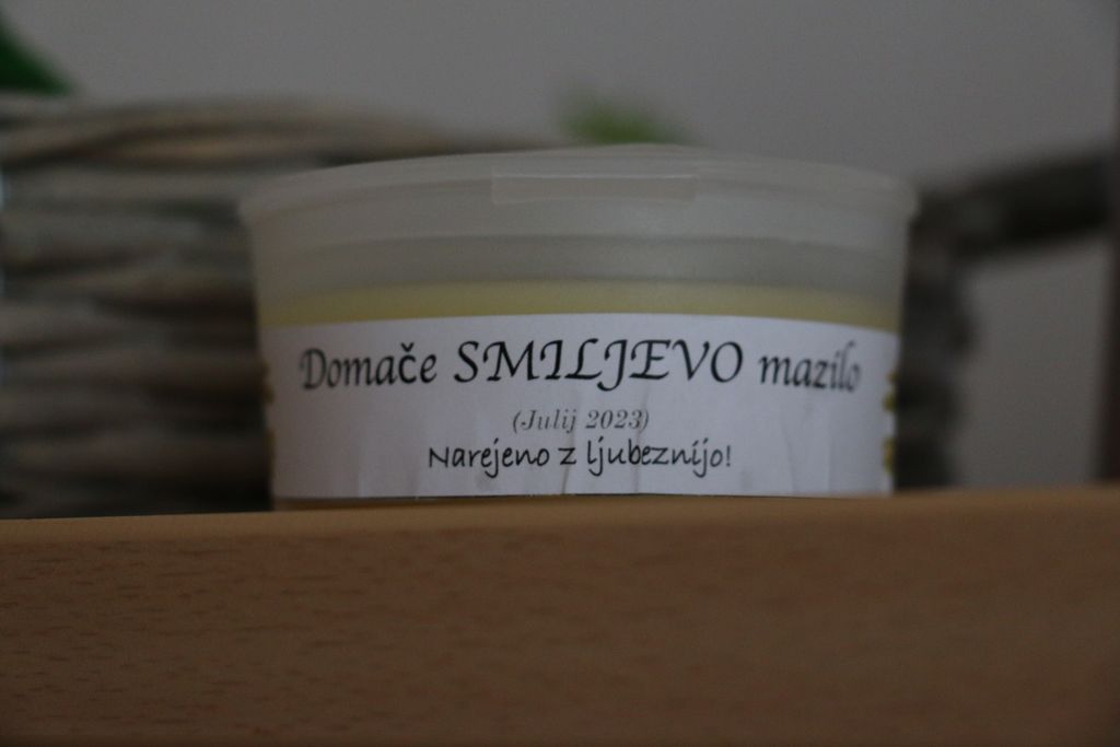 Tokrat smo se preizkusili v pripravljanju mazila iz drugega »velikega zaklada narave« - mediteranskega smilja, ki mu pripisujejo ogromno pozitivnih lastnosti. Med drugim učinkovito regenerira in pomlajuje kožo, prispeva k zmanjševanju gub, brazgotin, primeren pa je tudi za odpravljanje modric in neželenih strij. Zanimivo pa je tudi to, da naj bi njegov vonj spodbujal delovanje desne polovice možganov, torej del, ki je odgovoren za posameznikovo intuicijo in ustvarjalnost.