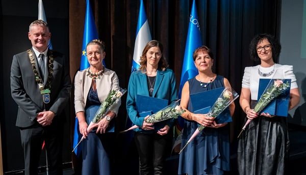 Dobitnice Vrunčevih plaket so: Ksenija Poklič za mentorstvo najmlajšim pri umetniškem ustvarjanju in projektno delo, Simona Štruc za pedagoške uspehe na področju izobraževanja odraslih in mladostnikov in Bernarda Zorman za 40-letno vsestransko pedagoško delo na Prvi osnovni šoli v Slovenj Gradcu.