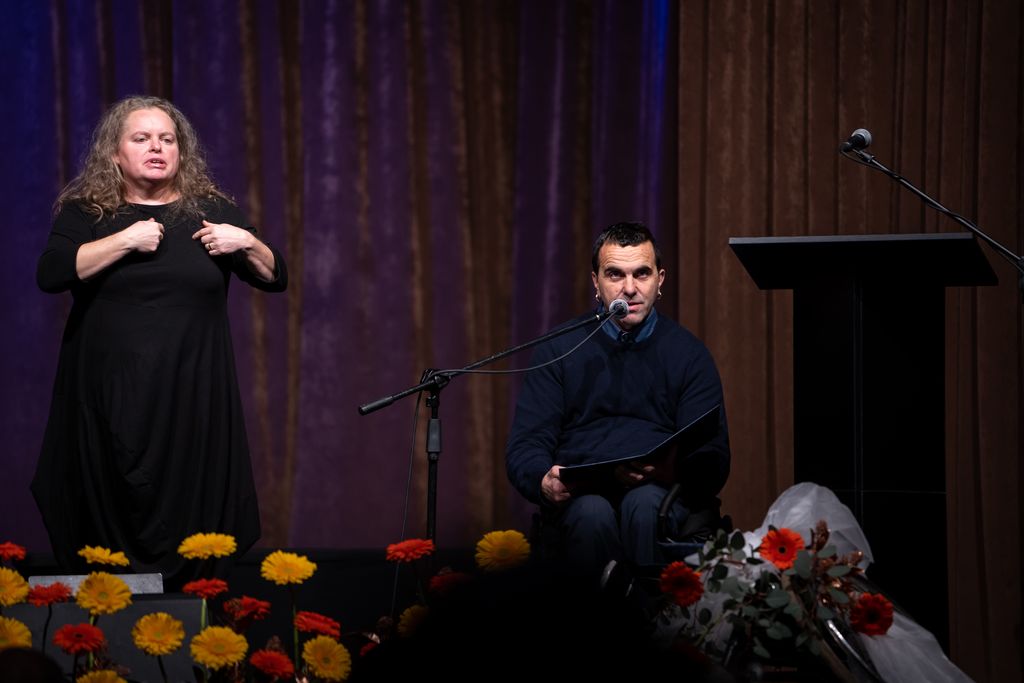 Dušan Stojanovič, poslanec v državnem zboru, je v nagovoru opozoril, da je vključenost invalidov v družbo bistveni pogoj za dejansko uveljavitev spoštovanja človekovih pravic, trajnostni razvoj ter mir in varnost. »Zavzemanje za uresničevanje pravic invalidov ni zgolj stvar pravičnosti, temveč je tudi naložba v skupno prihodnost. Tudi zato izbira teme letošnjega svetovnega dne invalidov ni naključna: »Transformativne rešitve za vključujoč razvoj: vloga inovacij pri spodbujanju dostopnega in pravičnega sveta«. Kajti novi izzivi zahtevajo inovativnost pri upravljanju z razpoložljivimi viri. Kompleksne in medsebojno povezane krize, s katerimi se danes sooča človeštvo, vključno s šoki, ki so posledica pandemije COVID-19, vojne v Ukrajini in drugod po svetu, prelomnice v podnebnem smislu predstavljajo humanitarne izzive brez primere, pa tudi grožnje za svetovni obstoj in ohranitev civilizacijskih dosežkov. V skladu z osrednjo predpostavko Agende za trajnostni razvoj do leta 2030, da "nikogar ne pustimo ob strani", je za vlade, javni in tudi zasebni sektor ključnega pomena, da skupaj najdemo inovativne rešitve za in z invalidi, da bi jim olajšali življenja.« je zapisal Dušan Stojanovič.