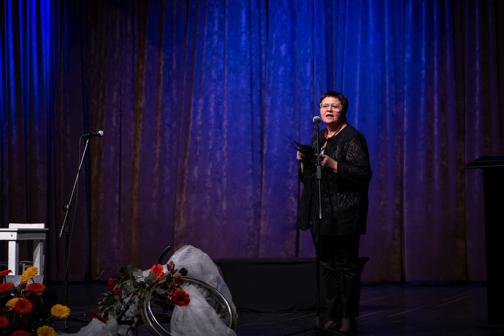 V zelo domišljeno izbranem kolažu nas je nagovarjala in motivirala razmišljanju ter našim dejanjem v odnosu do drugačnosti. Le malokdo je sploh dojel, da je igralka dejansko slepa in tako jih je bila večina zelo osuplih, ko se jim je to nakazalo ali povedalo. Program je vodila Janja Gašper, tolmačica v znakovni jezik je bila Darja Fišer. V prijetnem vzdušju so se obiskovalci in izvajalci družili še po proslavi.