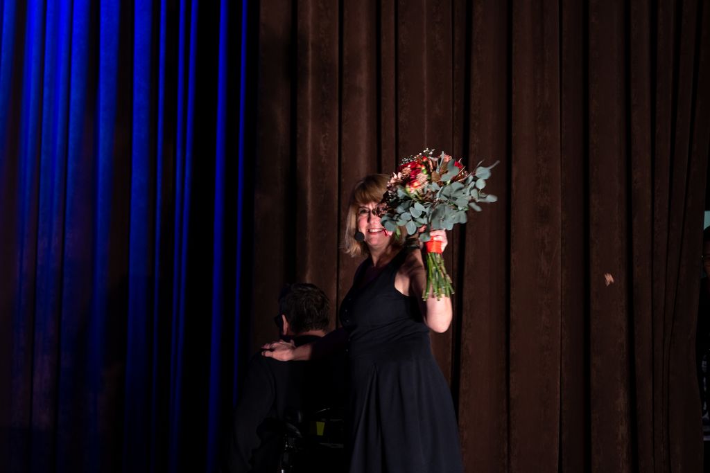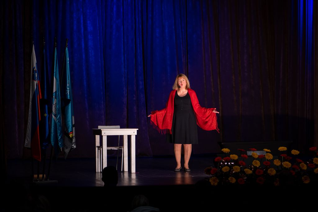 Vrhunec je bil nastop igralkeMetka Pavšič, ki se nam je predstavila s kolažem odlomkov predstav, recitacij in petja imenovanim Živim po svoje. Njen nastop je povezovala Ema Brelih.